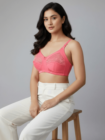 Embrace vibrant style with the Enchant Rani Pink Bra. Ideally suited for the “transition of women from youth,” this bra provides “perfect attention” to comfort using “Premium Cotton” and “Super Soft” fabric.
